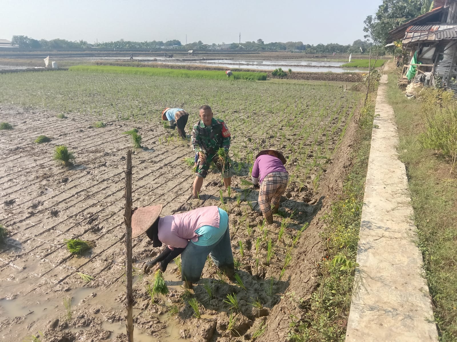 Bertempat di sawah milik Bapak oyong jalan A.Yani Kelurahan Larangan Kec. Harjamukti Kota Cirebon, Babinsa Kel. Larangan Serda Feri Suswanto, melaksanakan Pendampingan serta tturun ke sawah untuk penanaman padi kepada Anggota Kelompok Tani (Poktan) Sipadu Sejahtera yang mendapat bantuan dari Dinas Pertanian Kota Cirebon berupa jenis bibit padi Inpari 33.(Kamis, 20/6/24)